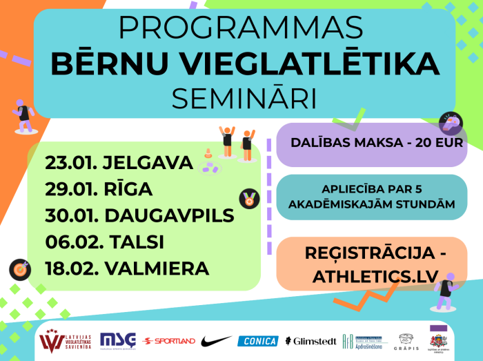 Pieteikšanās un vairāk informācijas: https://athletics.lv/lv/article/5677/treneri-un-sporta-skolotaji-aicinati-piedalities-bernu-vieglatletikas-seminaros